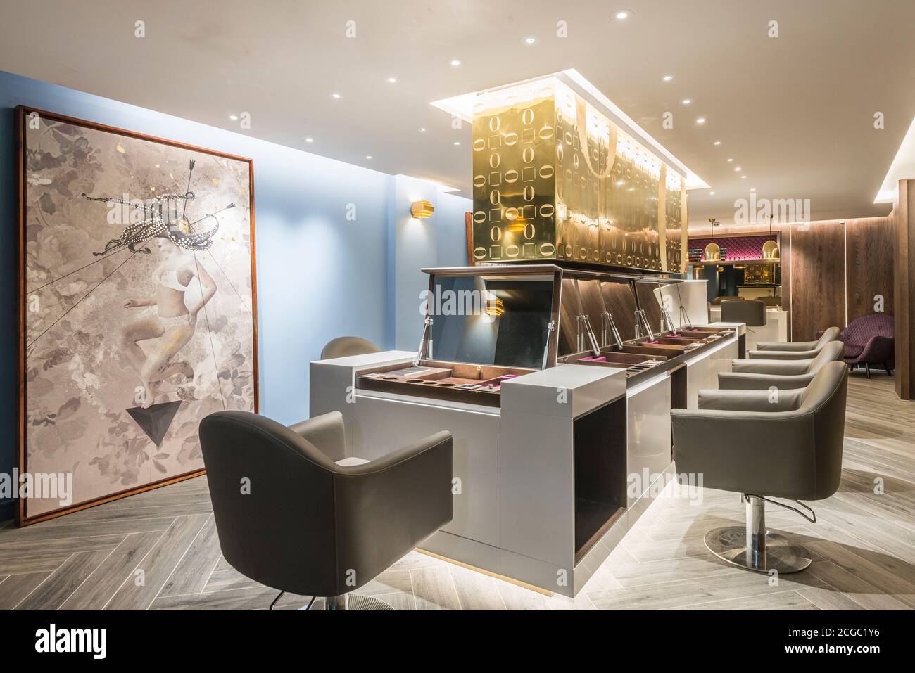 Haircut Stations In A Luxury Hair Salon Between Ground Floor And Basement With Bespoke Furniture Located In The Heart Of Soho London Uk Project Completed In November 2017 Stock Photo Alamy